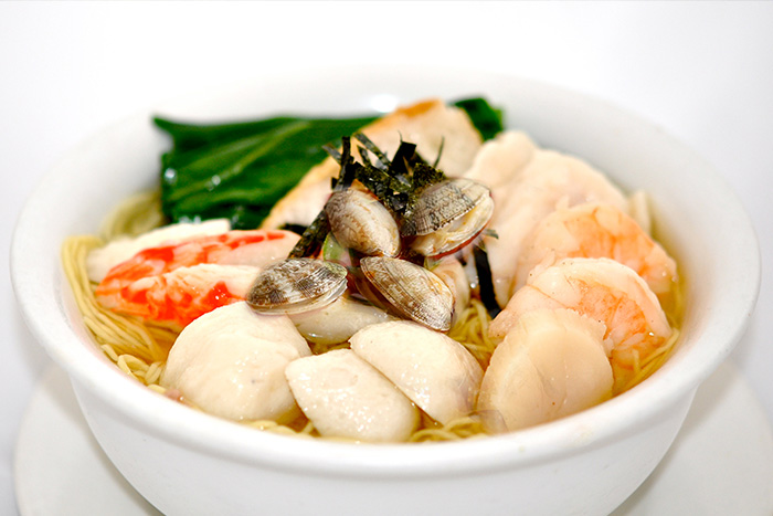 2.鮮面條200克、蝦2只、熟豬油3克、蔥花少許