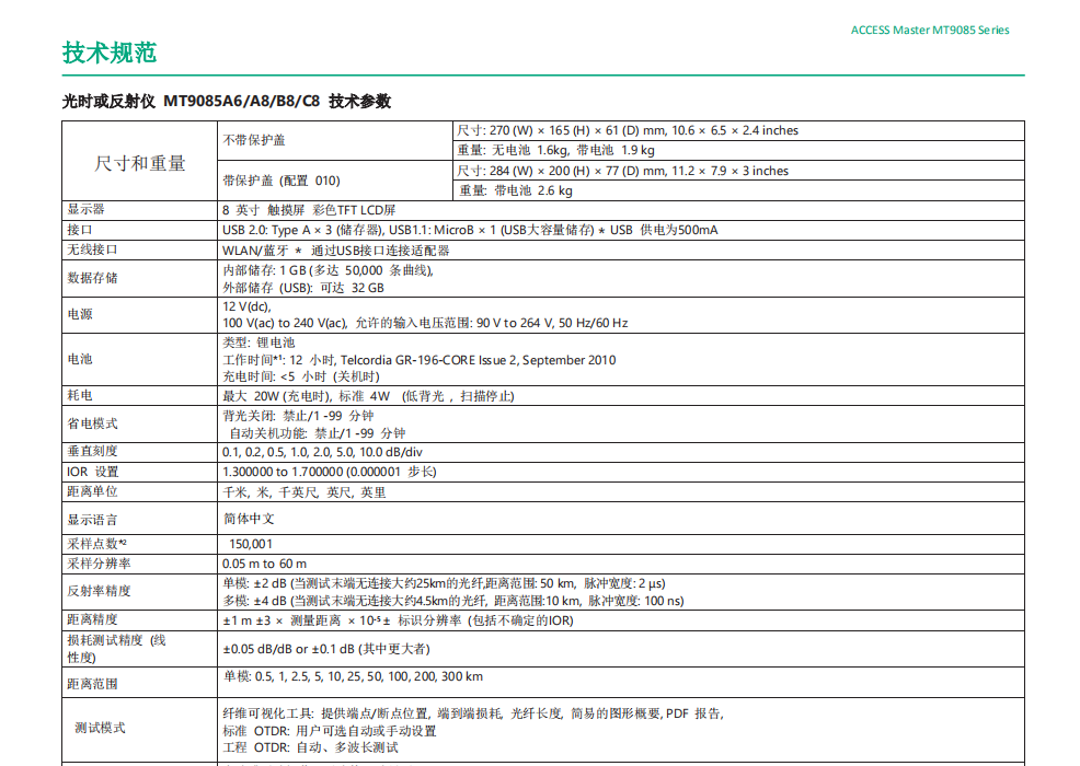 日本安立MT9085A6/MT9085A8/B8/C8光時(shí)域反射儀自帶光眼功能OTDR